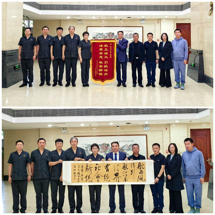 會(huì)后,我會(huì)輪值會(huì)長許寶平、副會(huì)長陳永民代表遼商總會(huì)向沈陽市和平區(qū)人民法院贈(zèng)送錦旗。