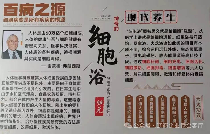 我們誠摯地邀請全球遼商企業家,在百忙之中暫歇腳步,親臨遼商會客廳,體驗“細胞浴”帶來的獨特魅力。在這里,讓疲憊的身心得到最深度的舒緩,讓奔波的靈魂尋得片刻的安寧,為下一次的揚帆遠航蓄滿健康動力,續寫遼商新的輝煌篇章!